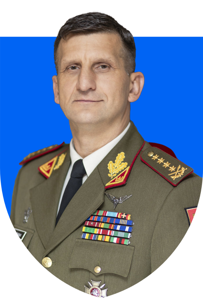 General Raimundas Vaikšnoras currently serves as the Chief of Defence of Lithuania. His military career began in 1991, shortly after Lithuania regained its independence, when he joined the Lithuanian Armed Forces as a reconnaissance officer. Over the past three decades, he has held a wide range of leadership positions – from platoon and company commander to Chief of Staff of the Lithuanian Land Forces and Commander of the Mechanized Infantry Brigade “Iron Wolf.” He has also served as Commander of the Lithuanian Land Forces, and later as Assistant Chief of Staff Plans J7 at NATO’s Allied Joint Force Command, Brunssum.