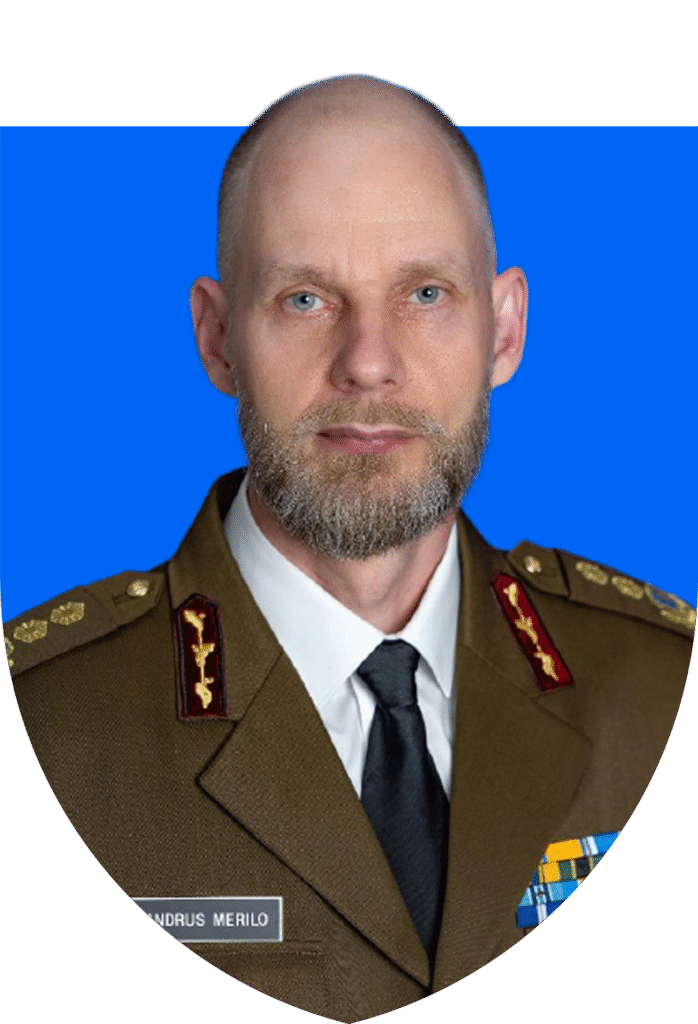 Lieutenant General Andrus Merilo is the current Commander of the Estonian Defence Forces, having assumed the role in July 2024. He has extensive combat experience from deployments to Lebanon, Kosovo, Iraq, and Afghanistan, and previously commanded the Scouts Battalion and the 1st Infantry Brigade.